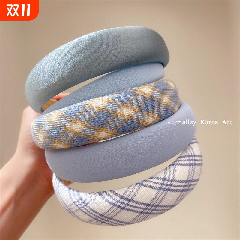 韩国进口气质简约蓝色系布艺高颅顶显脸小发箍百搭网红格纹发卡女