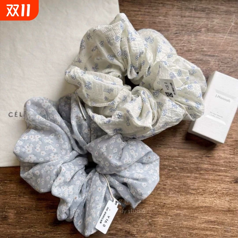 大号大肠发圈韩系头花发绳碎花蓝色头绳扎马尾新款头饰高弹力发饰