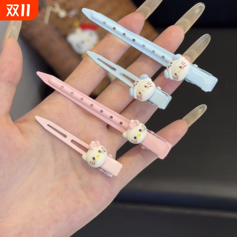 韩版可爱猫咪爱心发夹蓝色新款卡通一字夹高颜值百搭刘海发卡水滴