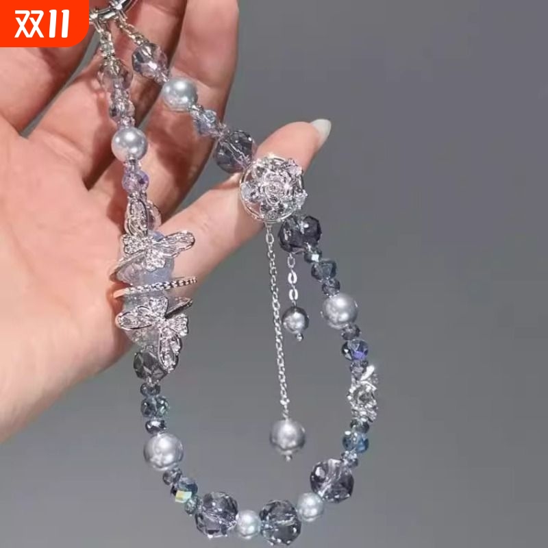 【蝶影幽兰】温柔氛围感清水蓝色蝴蝶串珠手机链百搭手机挂绳挂件