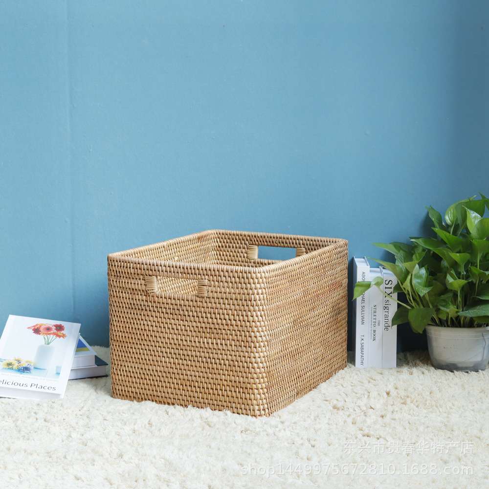 越南秋藤手工编织藤编家居收纳筐提手储物箱置物篮后备箱收纳真藤