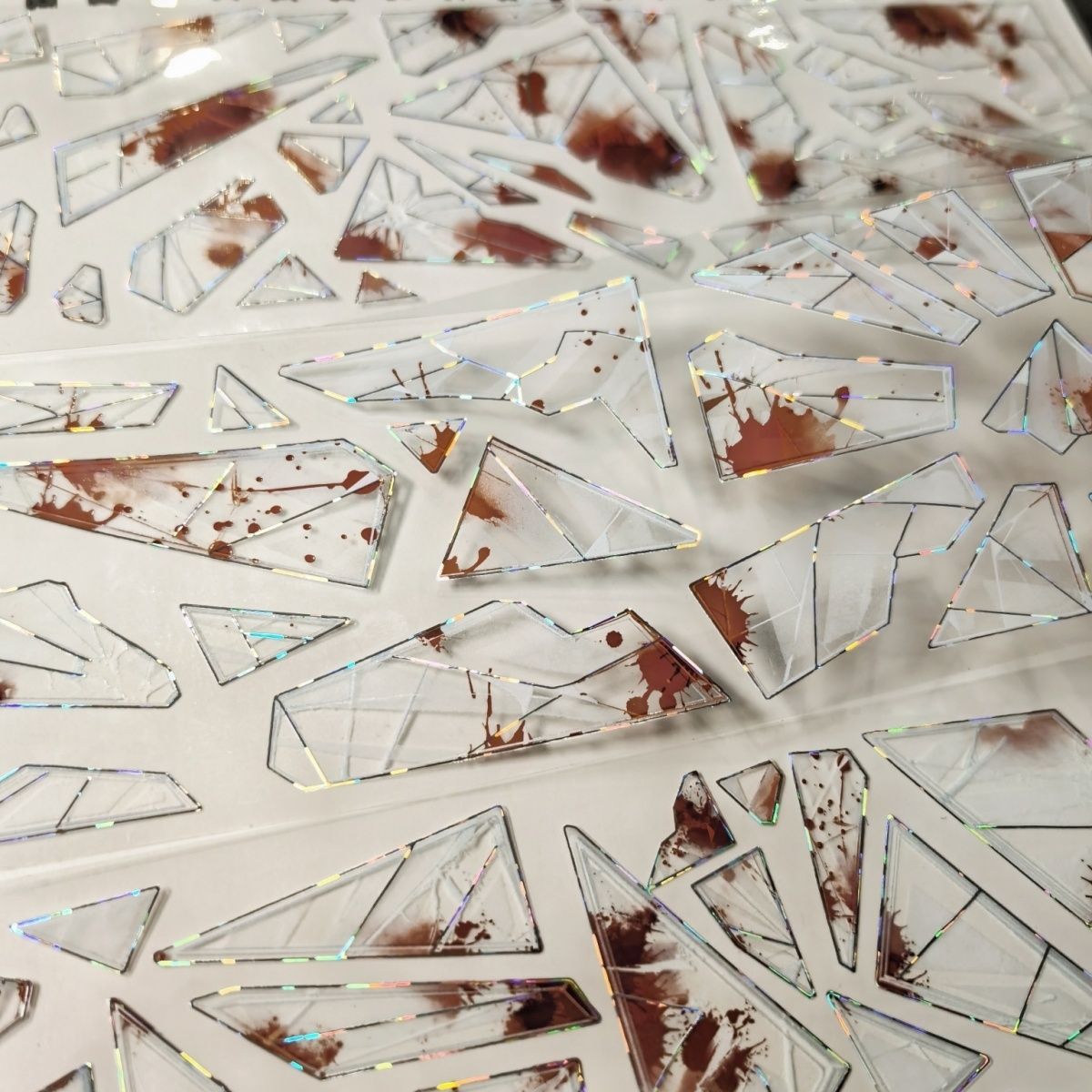碎玻璃血色朝夕手帐胶带分装半透明红PET古风素材手机壳流麻贴纸