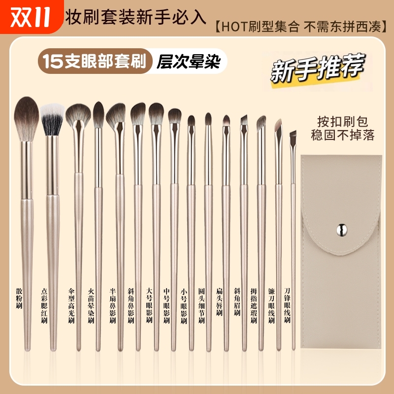 沧州15支化妆刷套装软毛眼影眼影刷散粉刷粉底眼妆卧蚕刀锋眼线刷