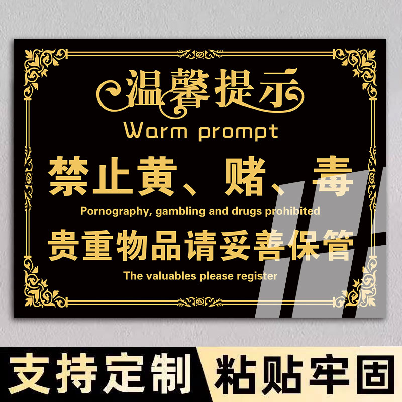 禁止黄赌毒标识标牌拒绝赌博三禁警示牌亚克力酒店客房严禁卖淫温馨提