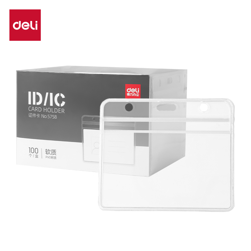 得力5758横式5759竖式透明PVC防尘防水证件卡套10只/包