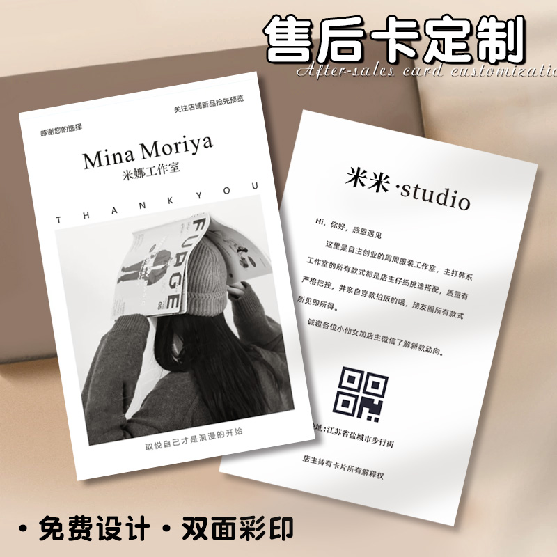 服装店售后卡订制电商感谢卡退换货登记小卡名片设计温馨提示引流地推