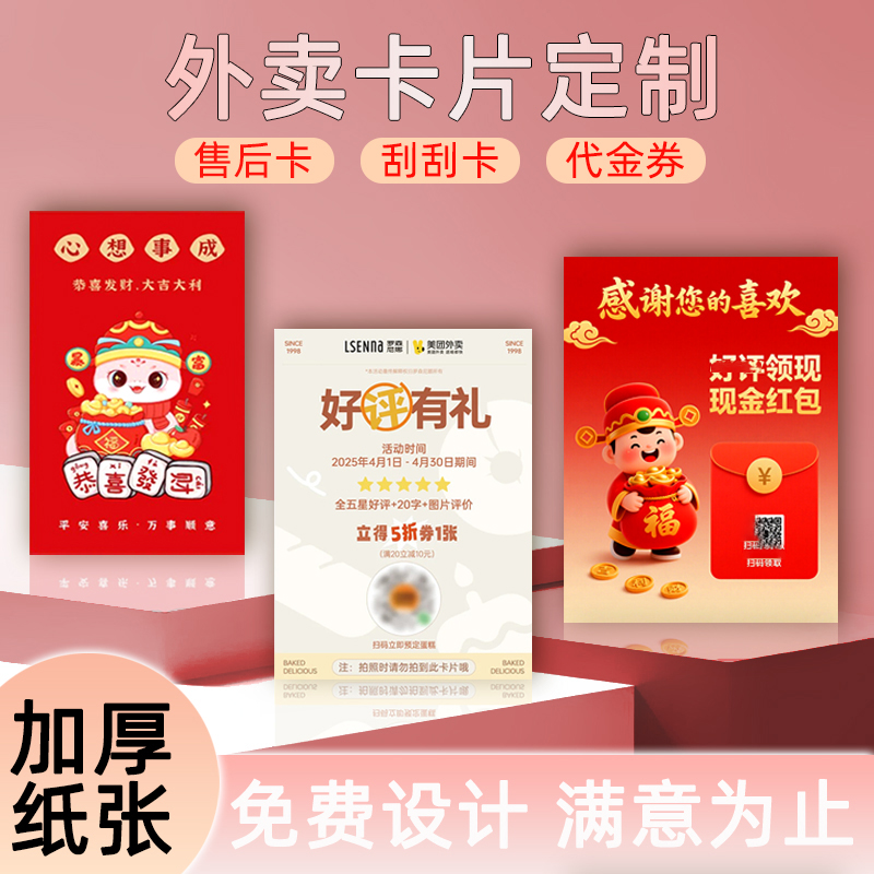 外卖卡片定制f订餐卡感谢卡制作设计菜单贴心评论卡餐饮折叠餐厅