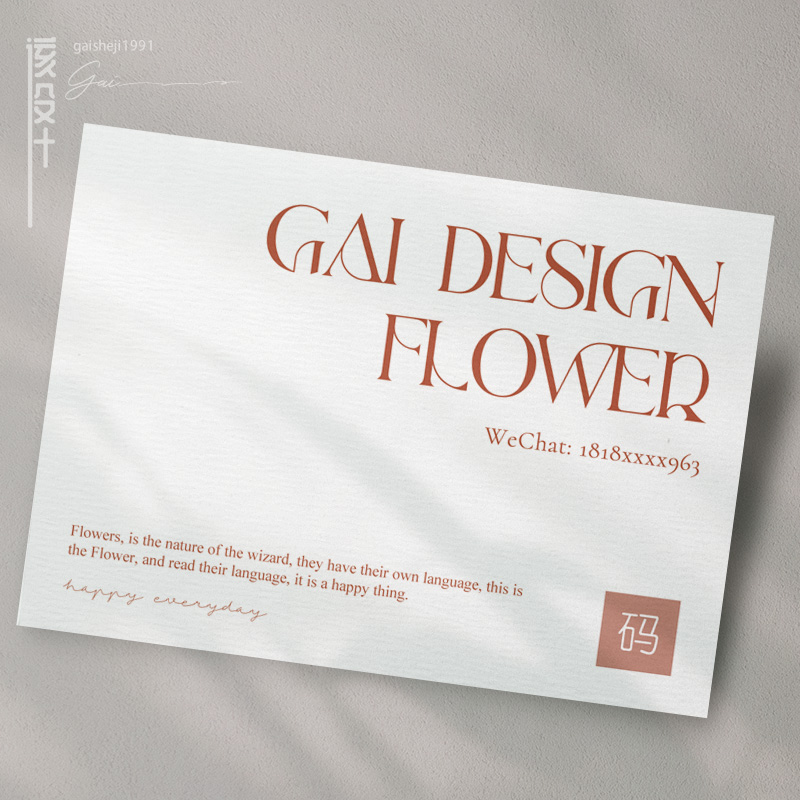 该设计简约花店长卡片定制高级质感花艺甜品礼品搭配字母留言贺卡