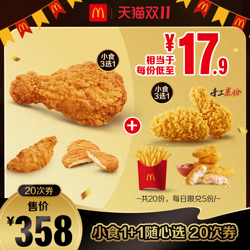 【下拉详情有惊喜】麦当劳 小食1+1随心选 20次券【谨防诈骗】
