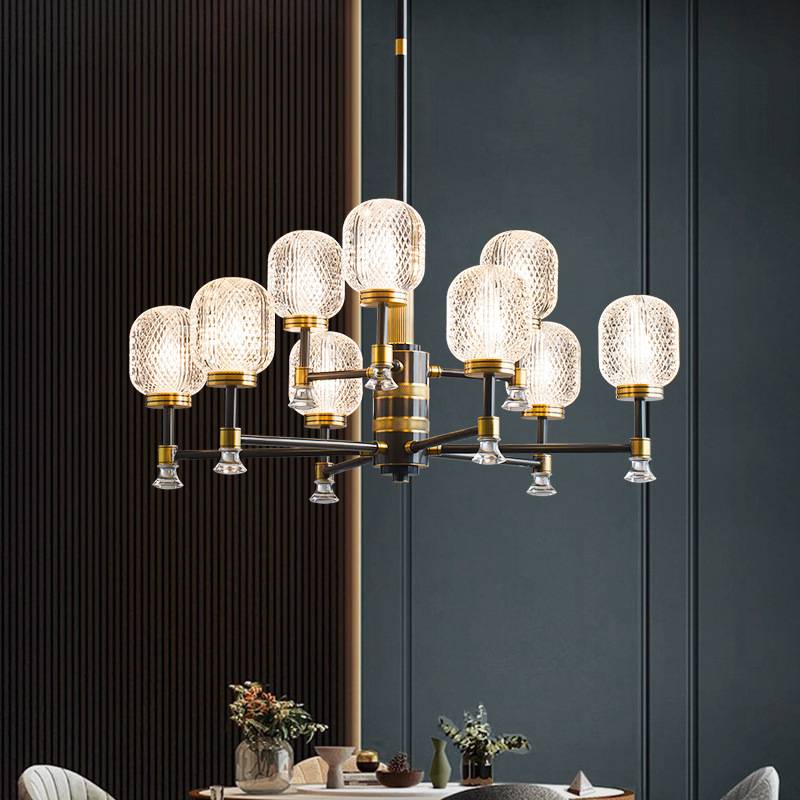轻奢后现代全铜客厅吊灯 北欧新款黑金玻璃餐灯 创意可调节卧室灯