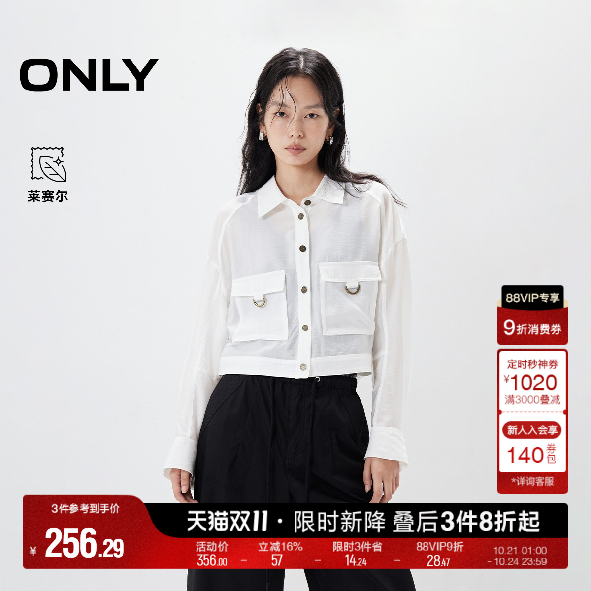 ONLY轻薄纯色短款长袖衬衫