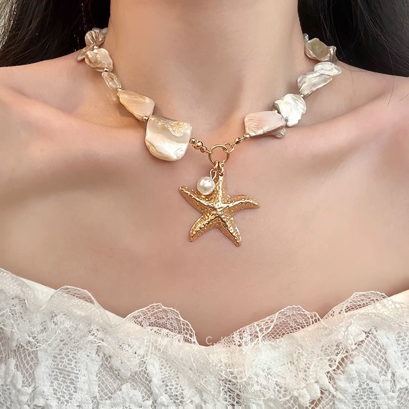 海边度假风贝壳海星珍珠项链女款2025新款颈链轻奢海岛配饰品海洋