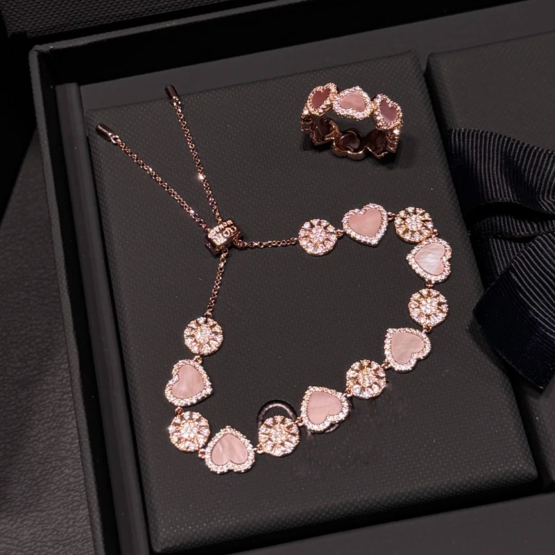 ap精工高版粉色爱心贝母太阳花手链戒指女ins精致手饰贝壳玫瑰金