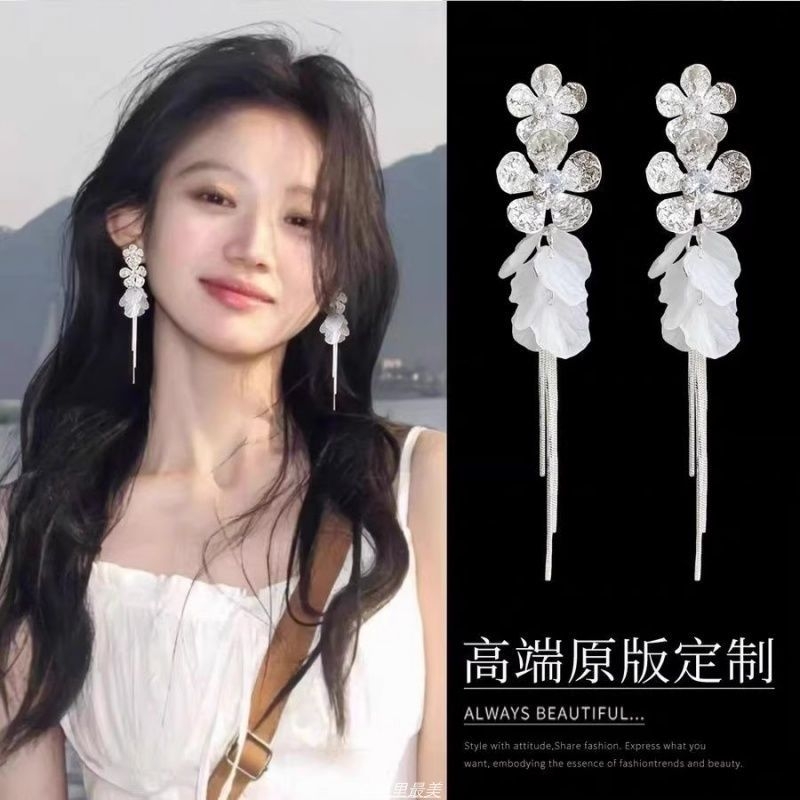 度假风绝美花朵贝壳流苏耳环女高级感海边超仙耳钉银色气质耳饰