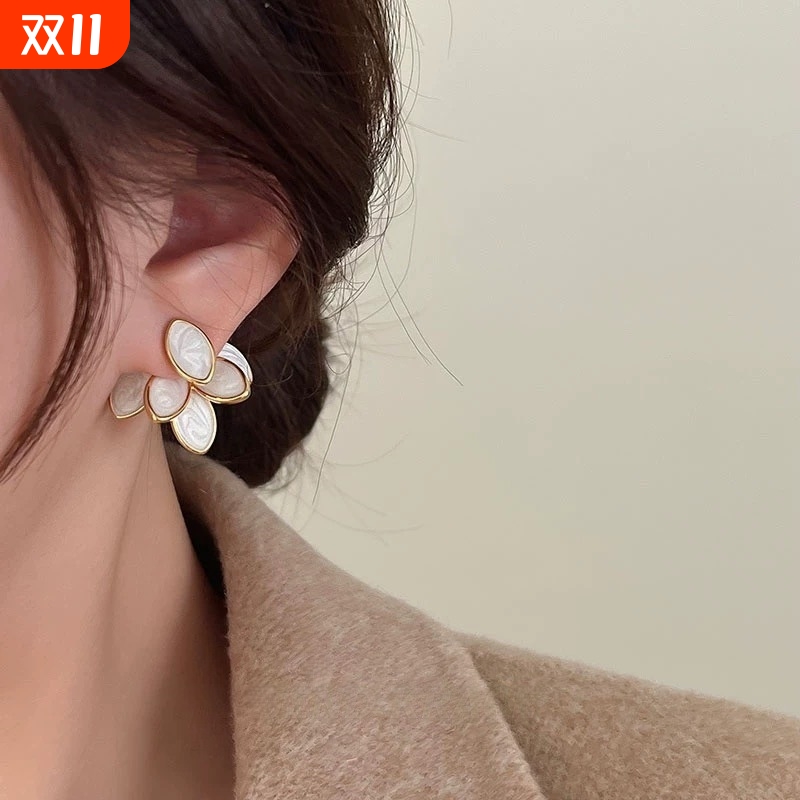 法式贝壳花瓣流苏耳环女款夏天轻奢小众耳钉高级感无耳洞耳夹耳饰