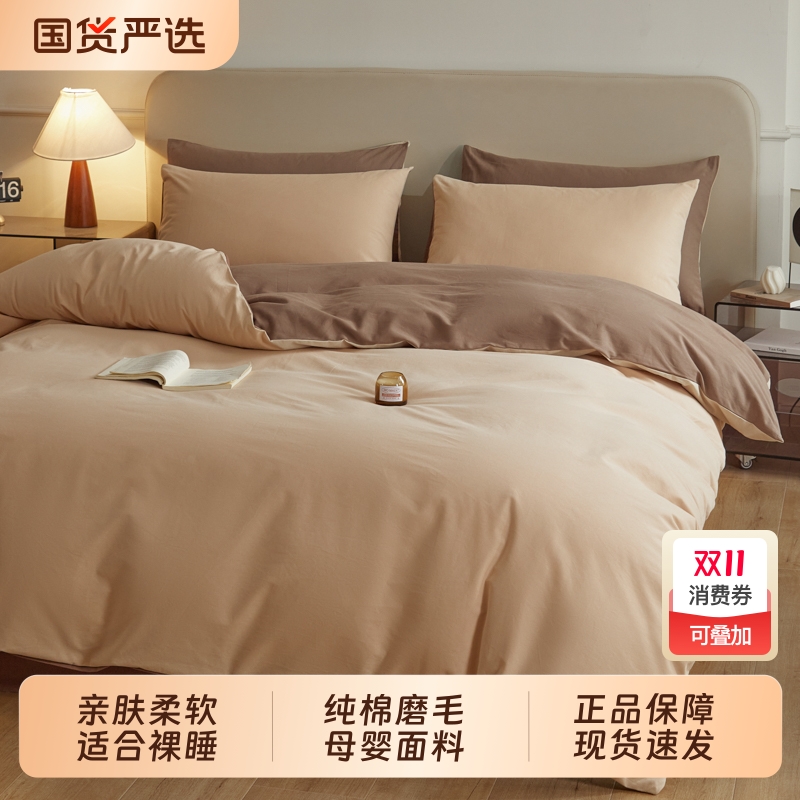 简约磨毛四件套纯棉全面2025新款高质量轻奢高级感床单被套秋冬
