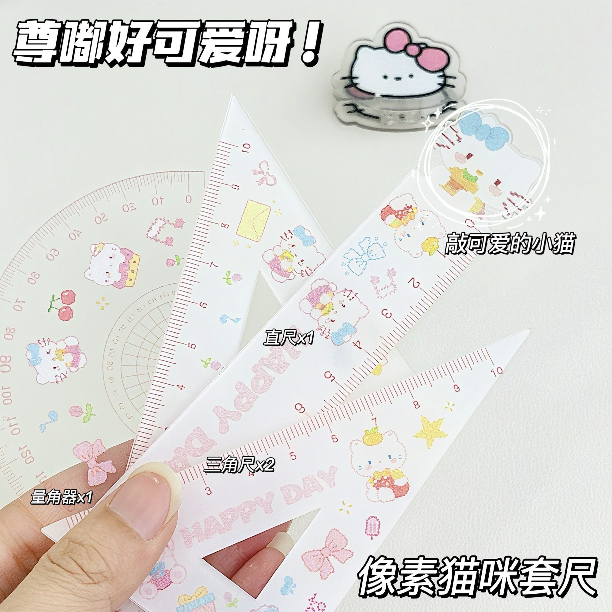 高颜值像素猫咪套尺学生不费眼大数字尺子三角尺直尺量角器套装