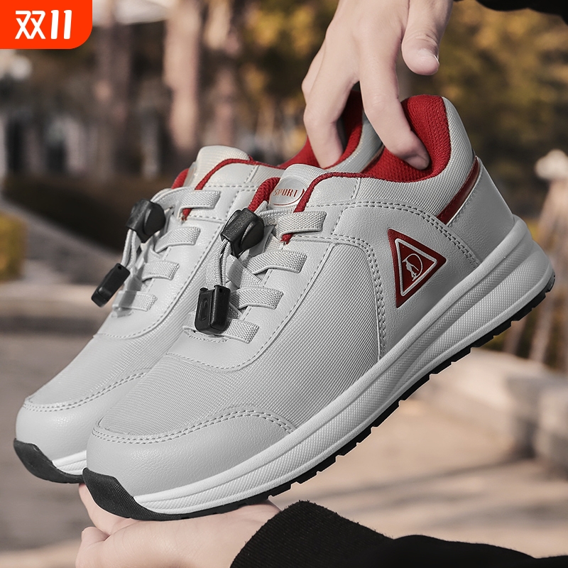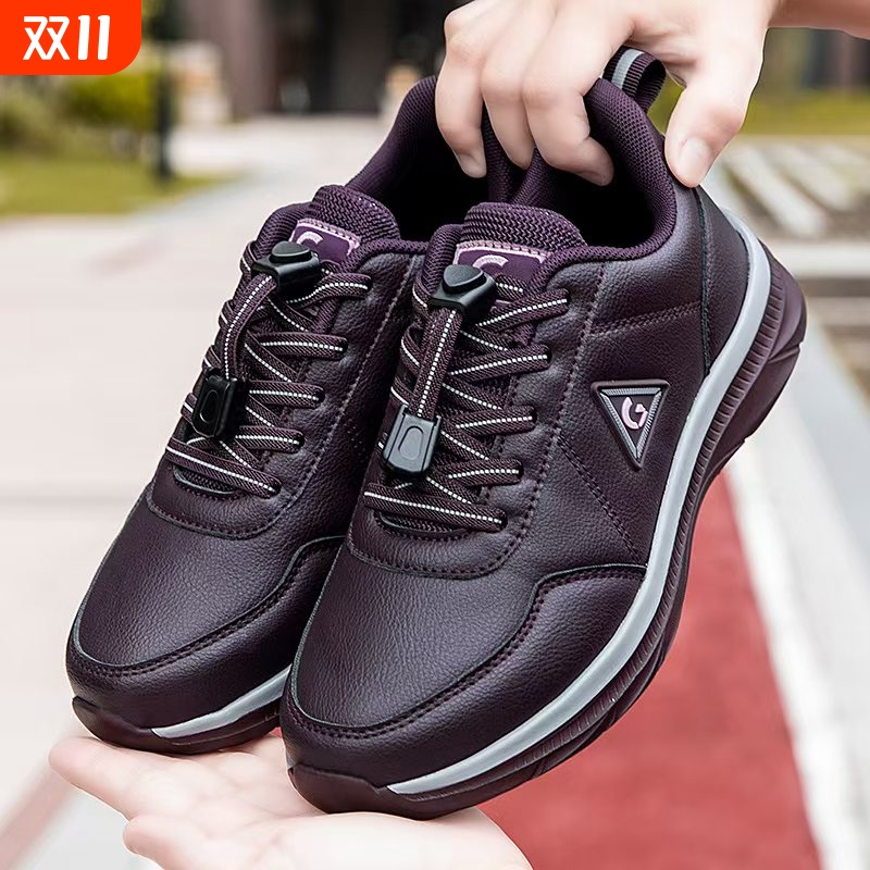 寿足力老人健步鞋秋季皮面防水爸爸鞋男女中老年防滑运动软底休闲