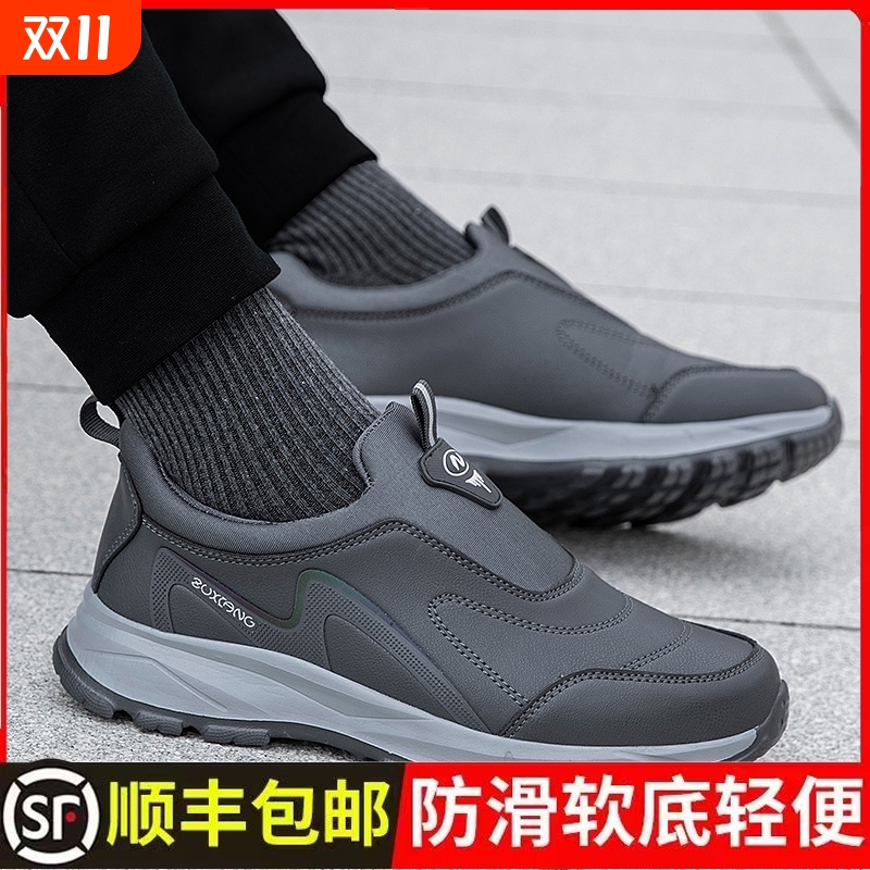 寿足力老人健步鞋男秋冬季一脚蹬软底爸爸加厚保暖中老年防滑防水