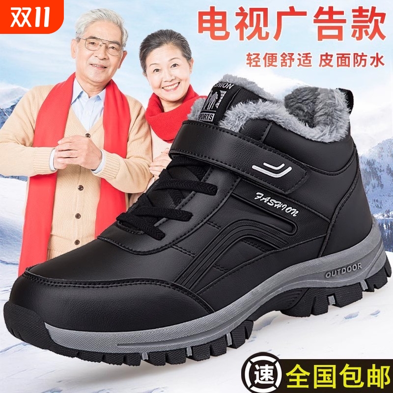 寿足力老人鞋冬季防水棉鞋防滑爸爸东北加厚羊毛加绒中老年雪地靴