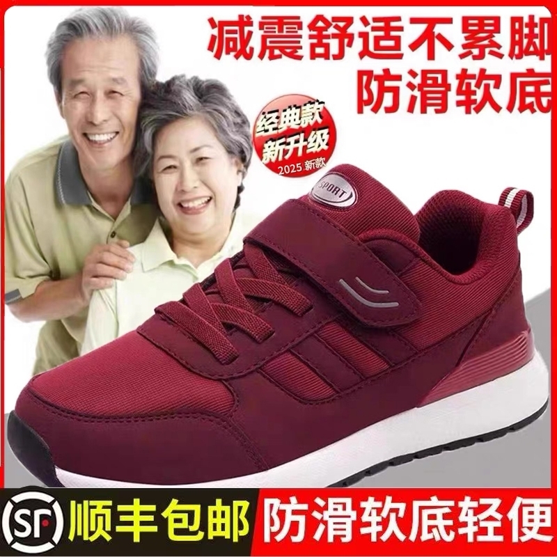 寿足力2025老人鞋妈妈鞋春秋加厚防滑软底中老年健步休闲运动鞋