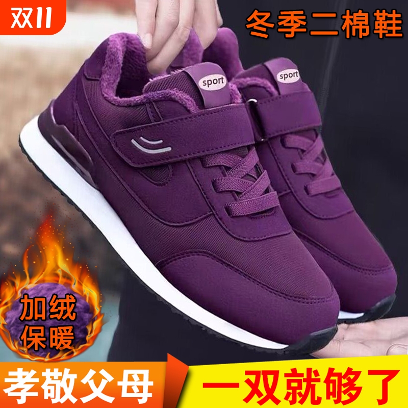 寿足力老人健步鞋防滑妈妈棉鞋女冬季加绒保暖二棉鞋中老年旅游鞋