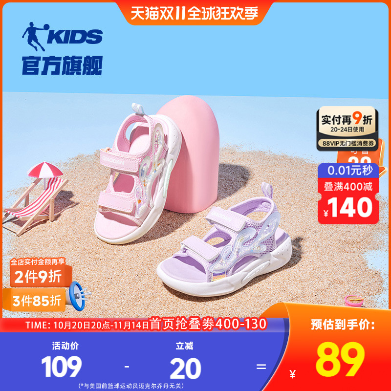 乔丹凉鞋儿童露趾运动凉鞋鞋子女小童2025夏季新款女孩防滑沙滩鞋