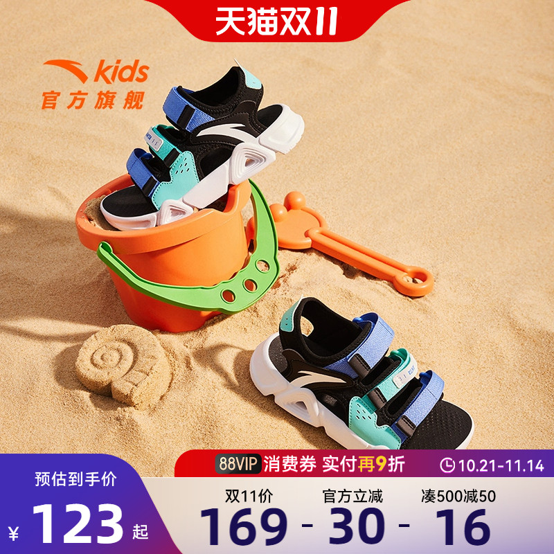 特步童鞋夏季新款小童透气儿童户外露趾凉鞋女童魔术贴防滑沙滩鞋