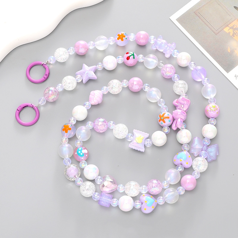 新款彩虹炫彩云朵串珠斜跨可背长款手机挂饰挂件包包挂绳肩带链子