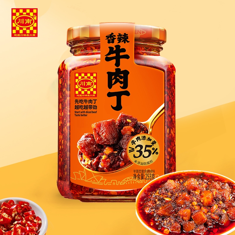 川南香辣牛肉丁253g牛肉酱下饭酱拌饭酱拌面酱下饭菜辣椒酱调味料