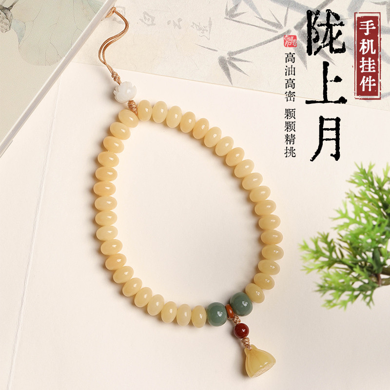奶油黄玉化菩提手机挂链真菩提子转运莲蓬长款手机钥匙防丢挂件女