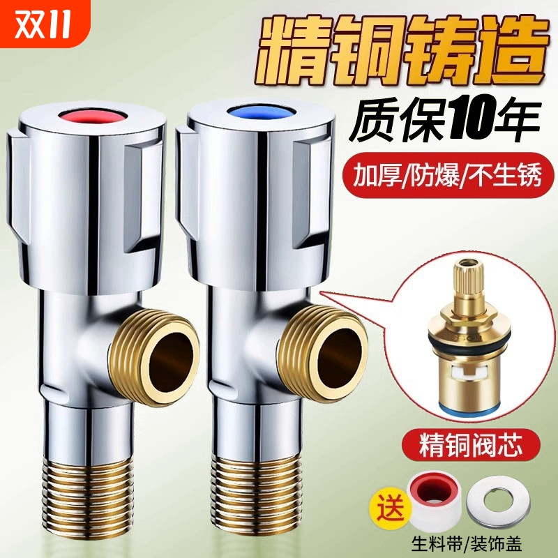 三角阀非全铜 铜牙角阀 冷热黄铜体热水器 4分一进二出 角阀防漏