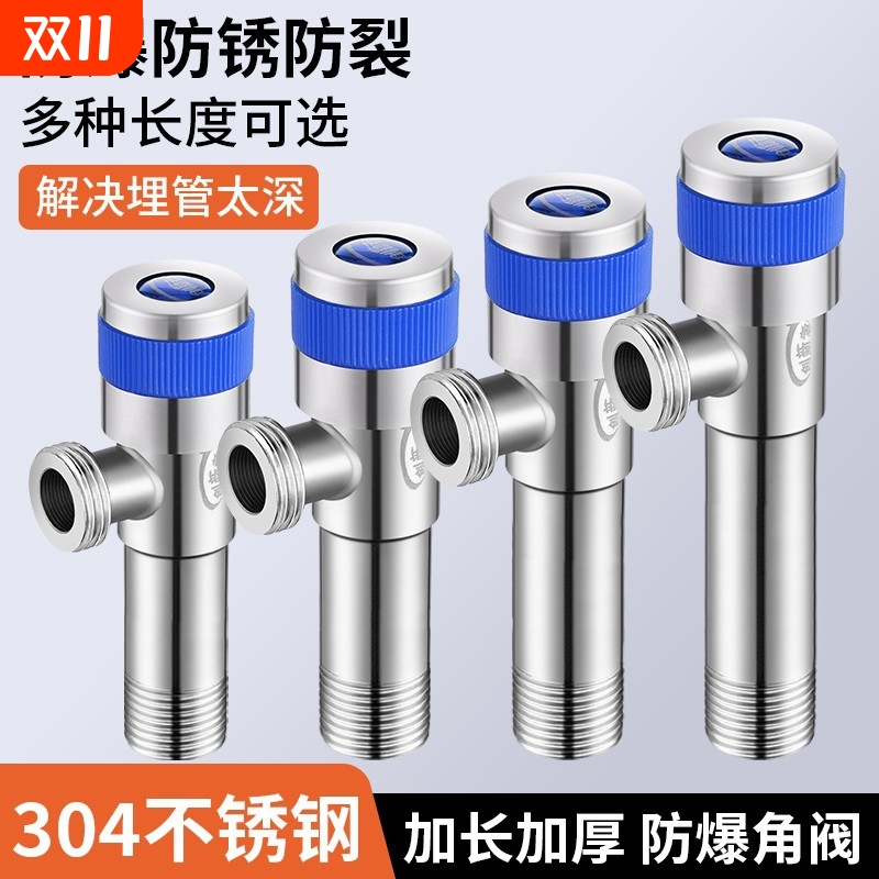 不锈钢角阀非全铜三角阀铜牙体热水器4分一进二出开关加长马桶