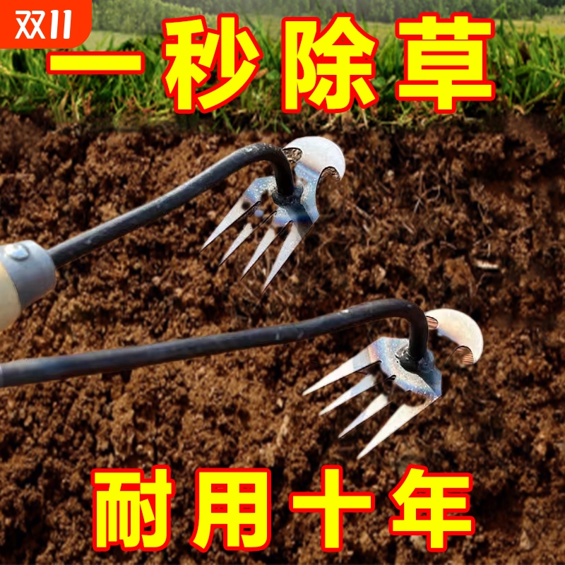 .新款除草神器连根拔草工具园艺耙子除根锰钢手握式松土挖野菜锄头¥