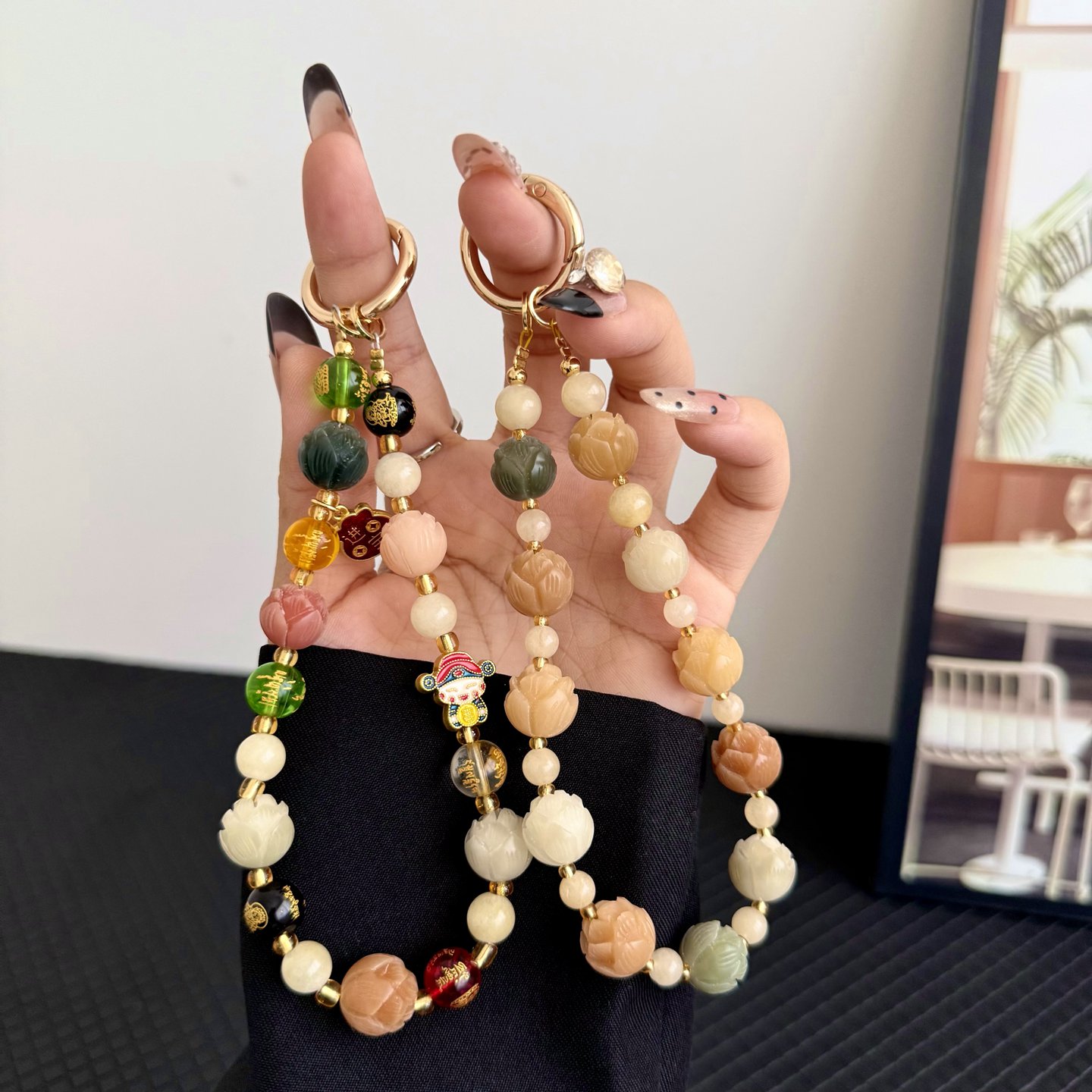 菩提根莲花多宝手机链好运连连女款精致手机壳挂绳手腕防丢挂饰