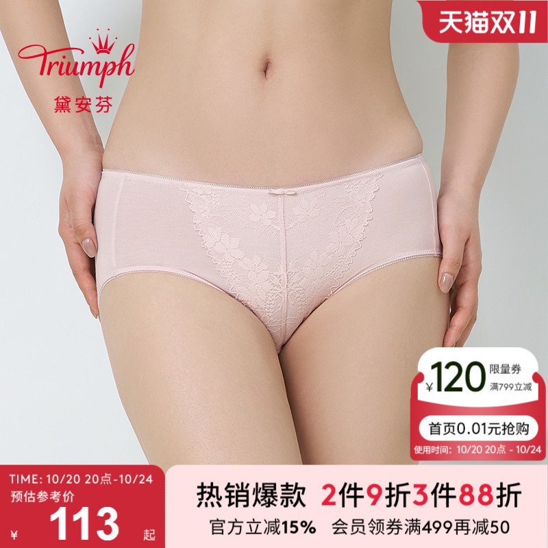 Triumph/黛安芬逆龄绽放新品小裤女蕾丝低腰平角红品内裤E0