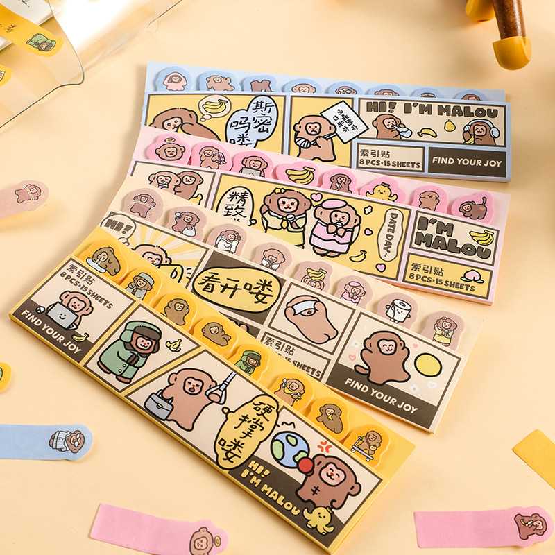 新款直销方岛小猴吗喽系列网红学生分类指示贴纸可书写索引贴N次