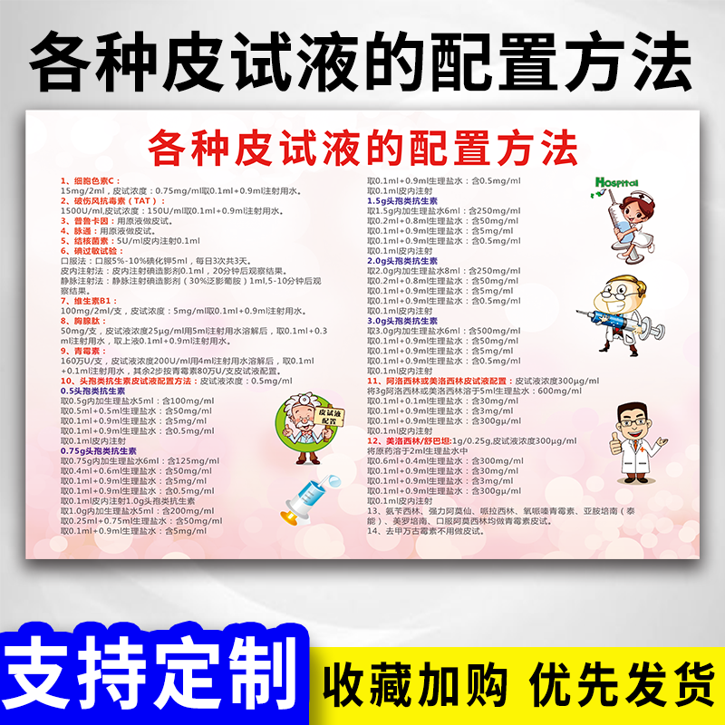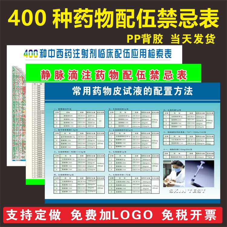 常用药物皮试液配置方法表挂图临床药物配伍禁忌表医院宣传海报图