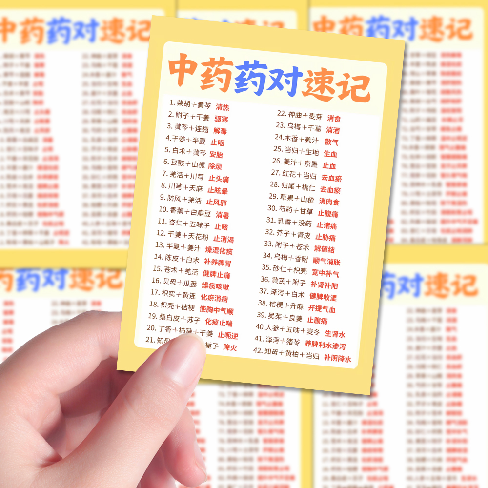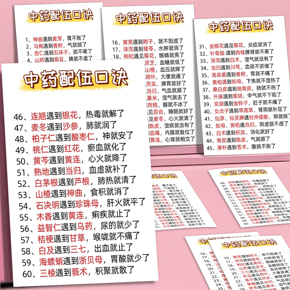 中医药配伍口诀中医常见配伍药效速记药材调理配方便携学习小卡