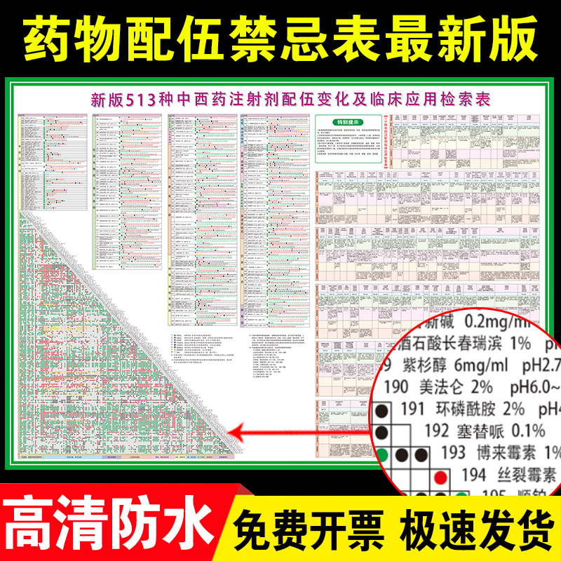 新版常用药物配伍禁忌简表输液表药物皮试液兽药品物配置表海报