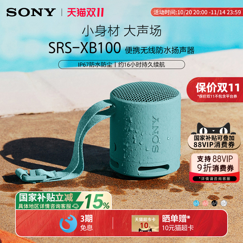 Sony/索尼 SRS-XB100 无线蓝牙音箱重低音炮便携防水