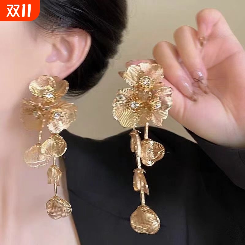 金色花朵流苏耳环女欧美重工夸张圆脸耳坠耳饰品小众轻奢气质耳钉