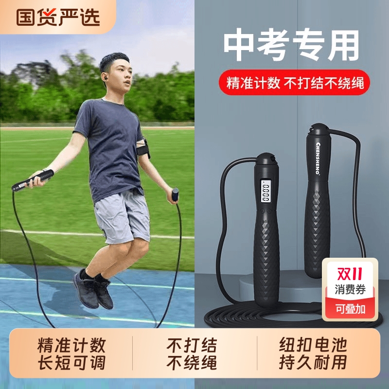 专业中考跳绳电子计数健身锻炼运动训练学生体育成人可调节钢丝绳