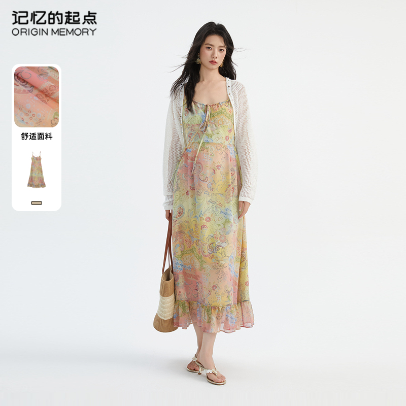 记忆的起点碎花吊带连衣裙