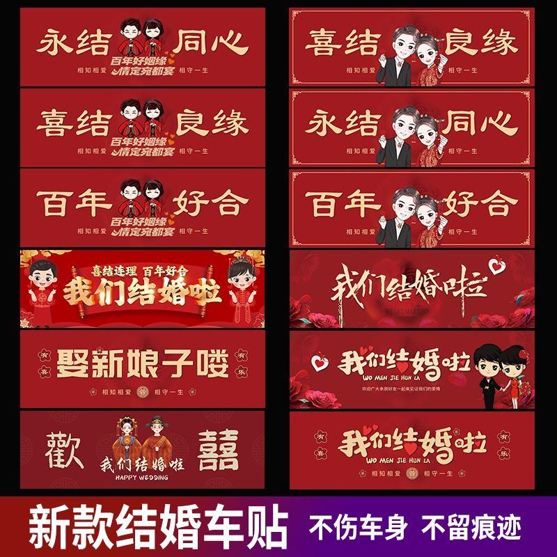 网红接亲队伍结婚车贴防水不伤车迎亲婚礼喜气氛围感不干胶贴纸