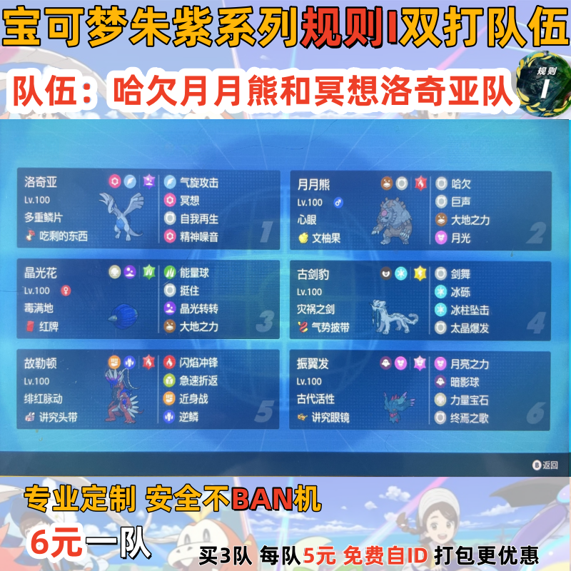 switch宝可梦朱紫规则I双打队伍哈欠月月熊和冥想洛奇亚队6元