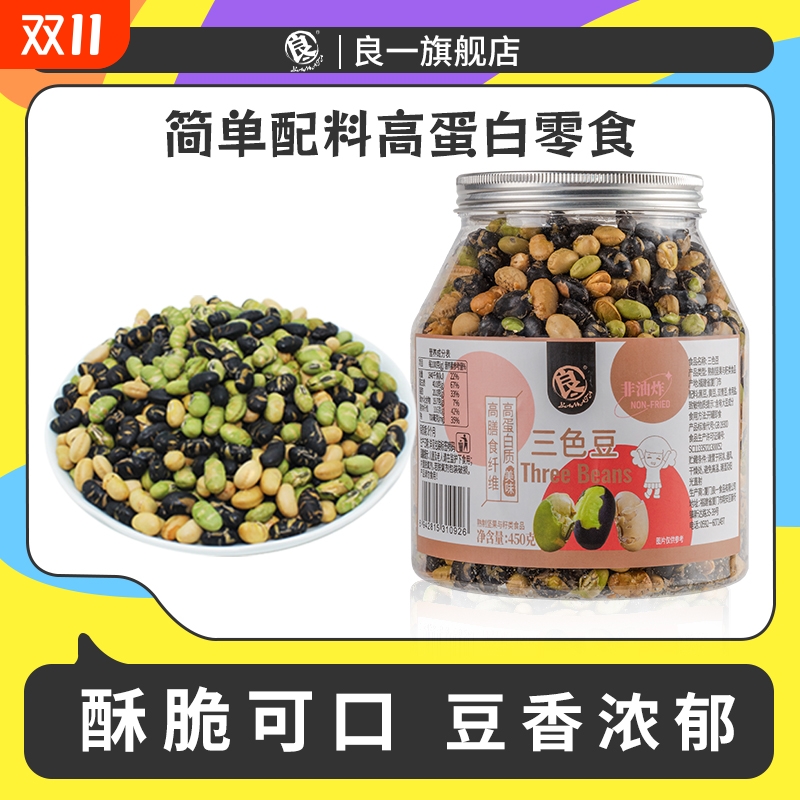 良一三色豆黑豆黄豆双青豆非油炸即食香酥高蛋白办公室零食450g罐