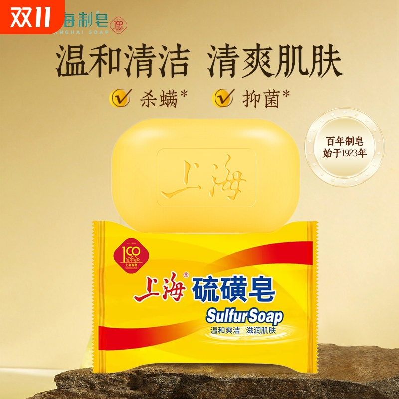 上海倾颜硫磺皂去除螨虫洗手香皂男女士洗脸洗澡沐浴清洁香皂抑菌