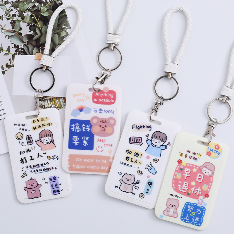 ins风英文励志油画校园工作证公交饭卡挂绳卡套小众门禁卡防丢绳