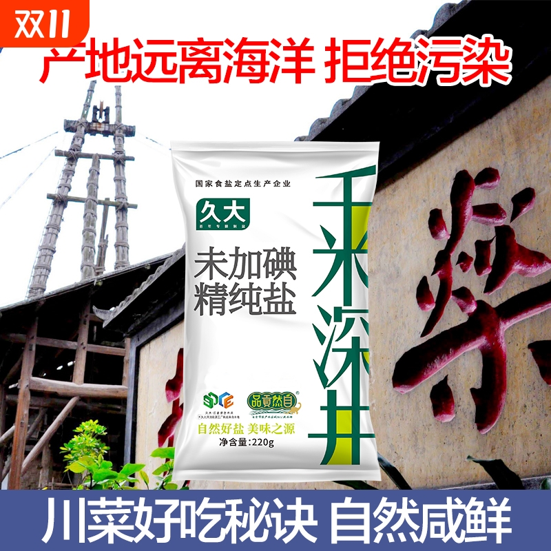 久大千米深井天然井盐食用无碘盐家用食盐盐巴不加碘盐220g*1袋